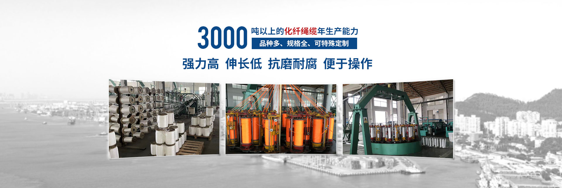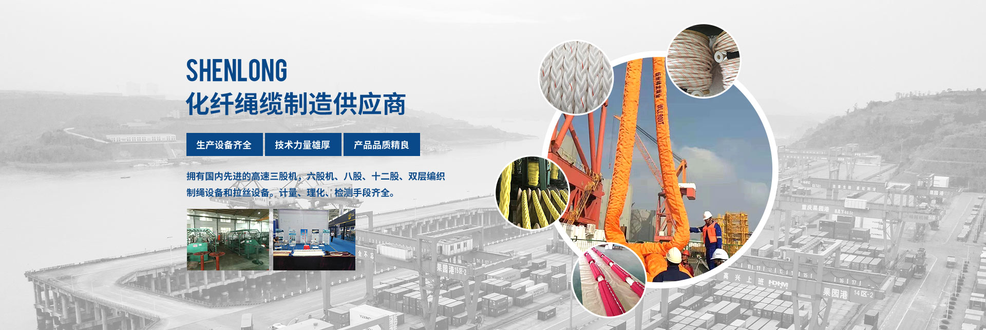 按國際標準生產的“繩龍”牌化纖繩纜,品種多、規(guī)格全,產品廣泛應用于遠洋運輸、船舶制造、漁業(yè)捕撈、港口作業(yè),國防軍工、石油勘探等領域,取得市場廣泛認可和市場占有率。